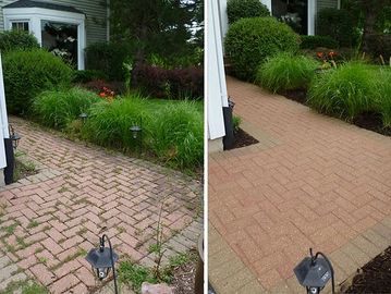 Our specialized equipment and knowledge of paver install allows us to safely clean them better than anyone! We utilize a safe and carefully metered level of low to medium pressure washing for cleaning of your patio or walkway pavers. Thanks to our decades of experience with installation, we also offer joint sand filler and paver sealing in a matte or wet look to help protect & enhance the look of your pavers and overall improvement to your property.
