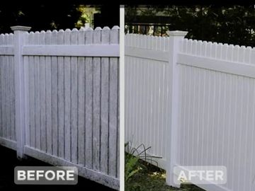 One of our most commonly added services is our fence cleaning. Our solution based softwash fence cleaning of vinyl & wood fencing with our Fence Genie specific solution blends based on your fence material. We finish with a rinse using safe, low pressure washing levels to remove remaining dirt and grime. Our treatment will refresh the look of your fence and rid all the organic growth that spreads onto other areas of your property.